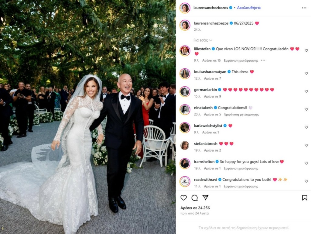 «Απορρίπτουμε τη λογική της εκμετάλλευσης που βλέπει την πόλη ως εμπόρευμα. Αυτό που μας ανησυχεί ακόμη περισσότερο είναι ένας δήμαρχος που προτιμά να πουλάει τη Βενετία, παρά να αντιμετωπίζει τα πραγματικά προβλήματα των κατοίκων της — το αυξημένο κόστος ζωής, τις τιμές της στέγασης και την αποψίλωση του ιστορικού κέντρου από τους ντόπιους» δήλωσε στο «Page Six» εκπρόσωπος της ακτιβιστικής ομάδας No Space for Bezos, καταδικάζοντας τον γάμο του δισεκατομμυριούχου.