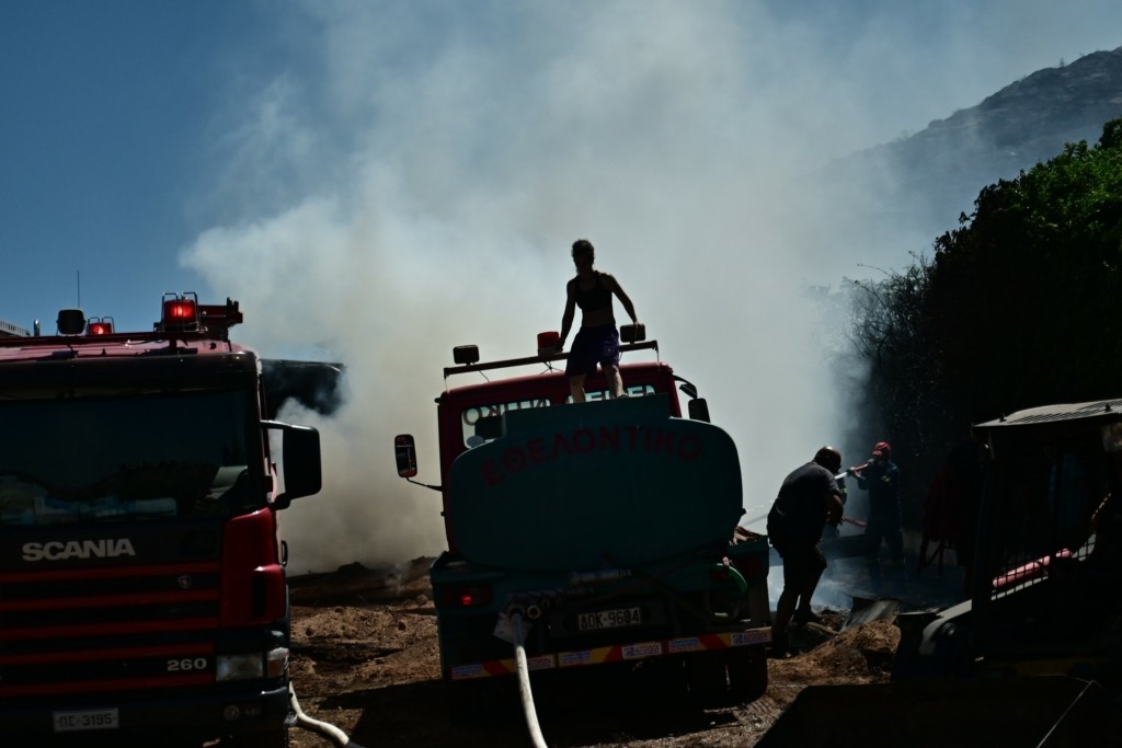 Υπάρχουν καταστροφές βέβαια, αλλά αυτή τη στιγμή δεν μπορώ να πω ότι μπορούμε να πούμε τίποτα. Πόσες είναι; Τι είναι; Γιατί είναι στο μέτωπο δεν φαίνεται τίποτα από το καπνό. Οι περισσότεροι έχουν πάει από τη μεριά της θάλασσας στο ΚΑΠΗ της Αγίας Μαρίνας και οι άλλοι οι οποίοι είναι προς τη μεριά του Λαγονησίου να πάνε στο ΚΑΠΗ του Δήμου Σαρωνικού, που είναι στην οδό Απειράνθου».