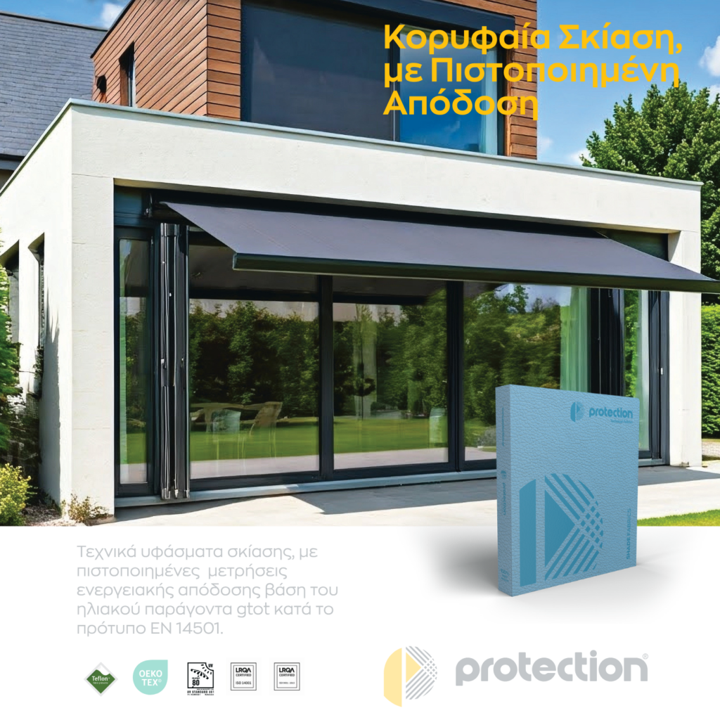 Η εταιρεία Protection, με μακρά παρουσία στον τομέα της σκίασης και έμφαση στην καινοτομία και τη βιωσιμότητα, παρουσιάζει τη νέα της συλλογή υφασμάτων για το 2025. Πρόκειται για έναν πλήρη και ανανεωμένο κατάλογο που φιλοδοξεί να καλύψει κάθε ανάγκη σκίασης στον σύγχρονο επαγγελματικό και οικιακό χώρο.