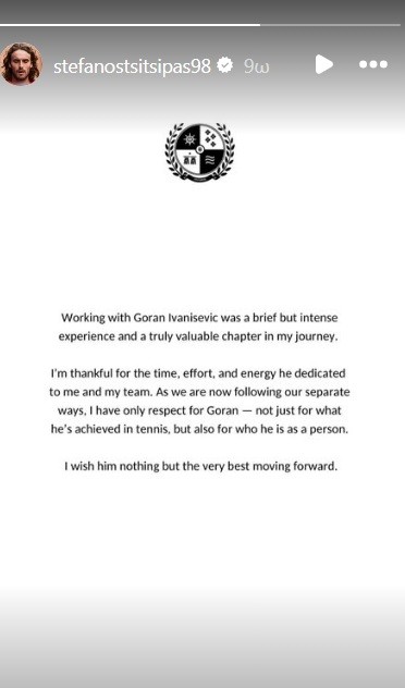 Μόλις ενάμιση μήνα κράτησε η συνεργασία του Στέφανου Τσιτσιπά με τον Γκόραν Ιβανίσεβιτς, καθώς ο Ελληνας τενίστας ανακοίνωσε τα ξημερώματα την απόφασή του.
