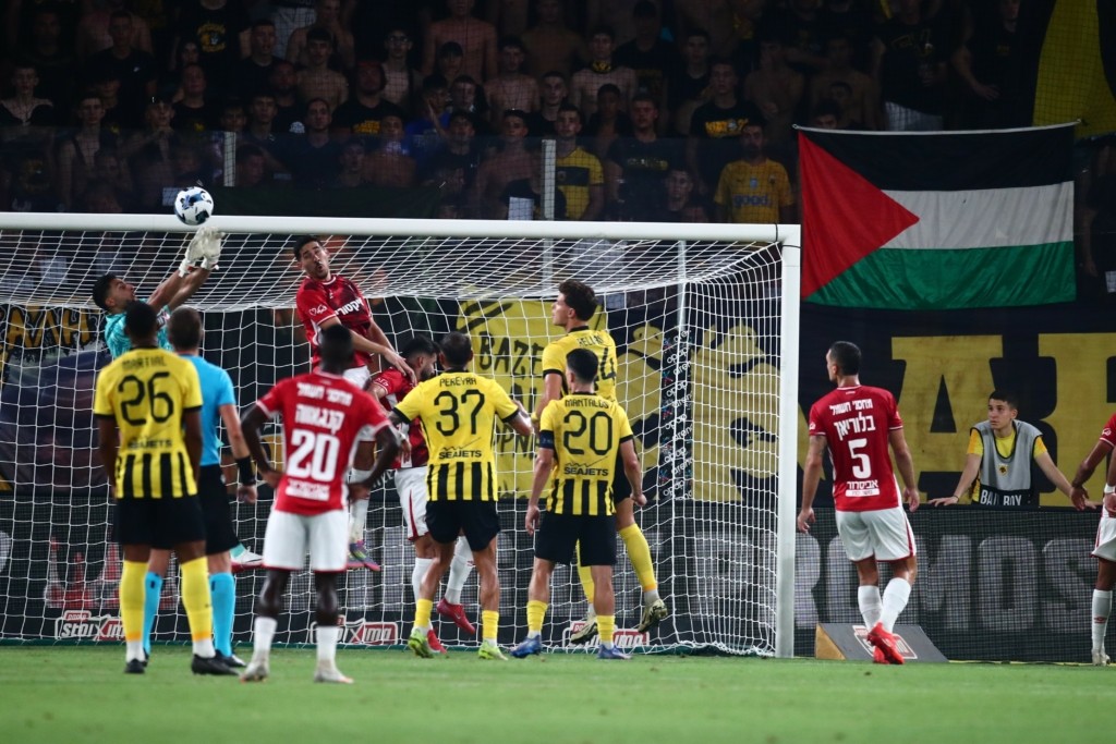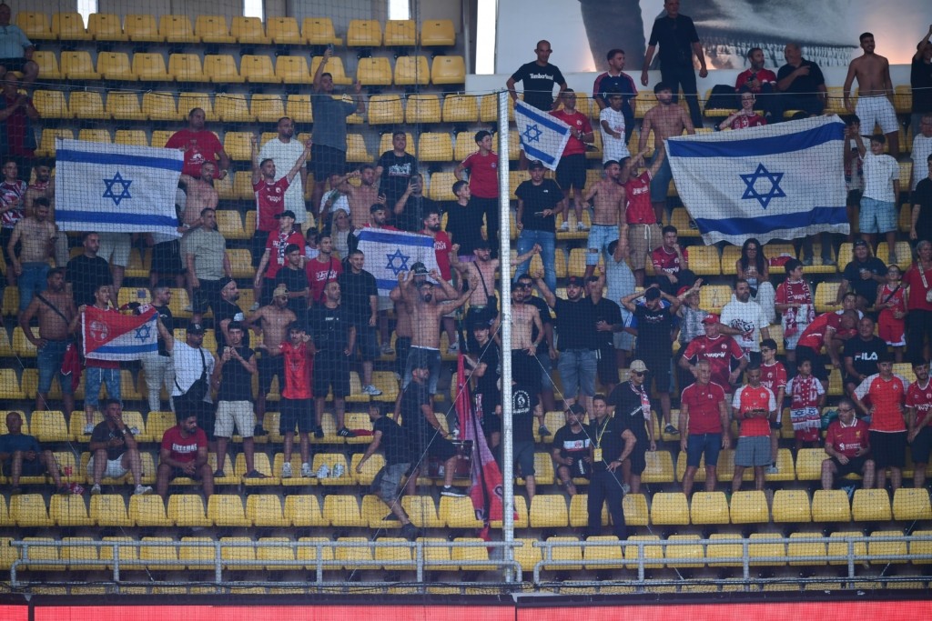 Από την άλλη πλευρά, οι περίπου 150 οπαδοί της Χάποελ Μπερ Σεβά ύψωσαν ισραηλινές σημαίες στην κερκίδα των φιλοξενούμενων, προκαλώντας έντονες αποδοκιμασίες από τους οπαδούς της ΑΕΚ.
