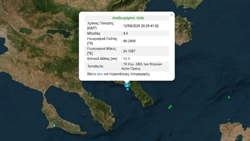Σεισμός μεγέθους 4 Ρίχτερ σημειώθηκε το βράδυ της Τρίτης στο Άγιο Όρος.