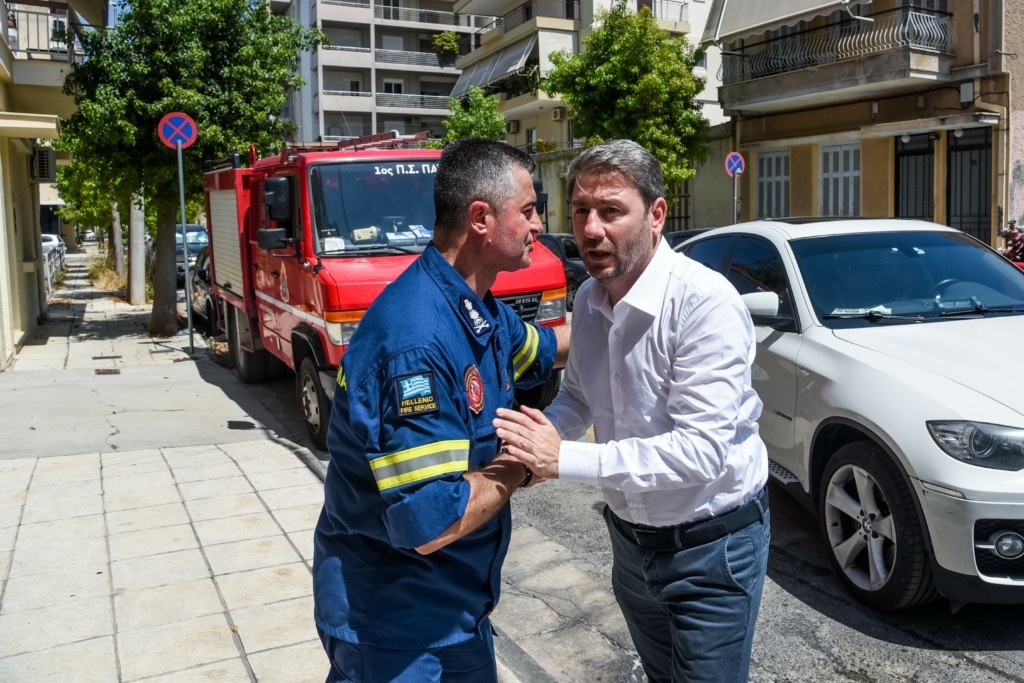 Πρώτος σταθμός της επίσκεψης του κ. Ανδρουλάκη ήταν το μοναστήρι του Αγίου Νικολάου, που υπέστη ζημιές και ακολούθως συνομίλησε με τους άνδρες και τις γυναίκες του 1ου πυροσβεστικού σταθμού Πάτρας, εκφράζοντας την υποστήριξή του στο αίτημα τους για πλήρη χορήγηση του επιδόματος επικίνδυνης και ανθυγιεινής εργασίας. Για τους εποχικούς πυροσβέστες, υπενθύμισε ότι το ΠΑΣΟΚ με τις τροπολογίες του είχε πρωτοστατήσει προκειμένου να επιλυθεί δίκαια το εργασιακό τους πρόβλημα.