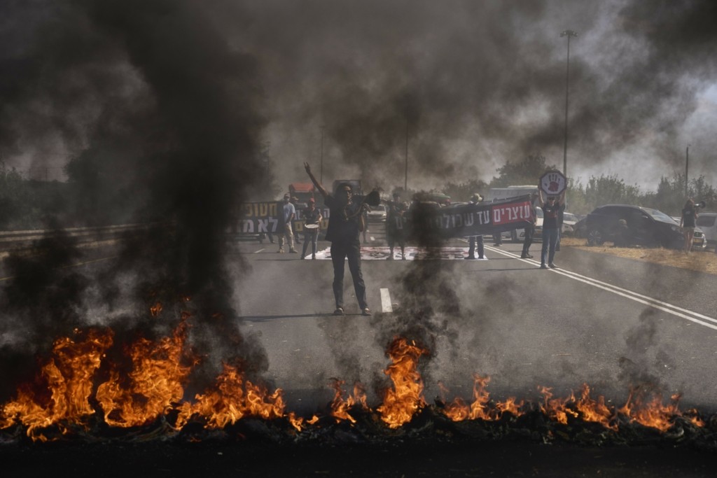 Διαδηλωτές απέκλεισαν βασικές οδούς καθώς και του κεντρικού αυτοκινητόδρομου στο Τελ Αβίβ, ζητώντας την απελευθέρωση των ομήρων που κρατούνται από τη Χαμάς στη Γάζα και τον τερματισμό του πολέμου μέσω διαπραγματεύσεων.