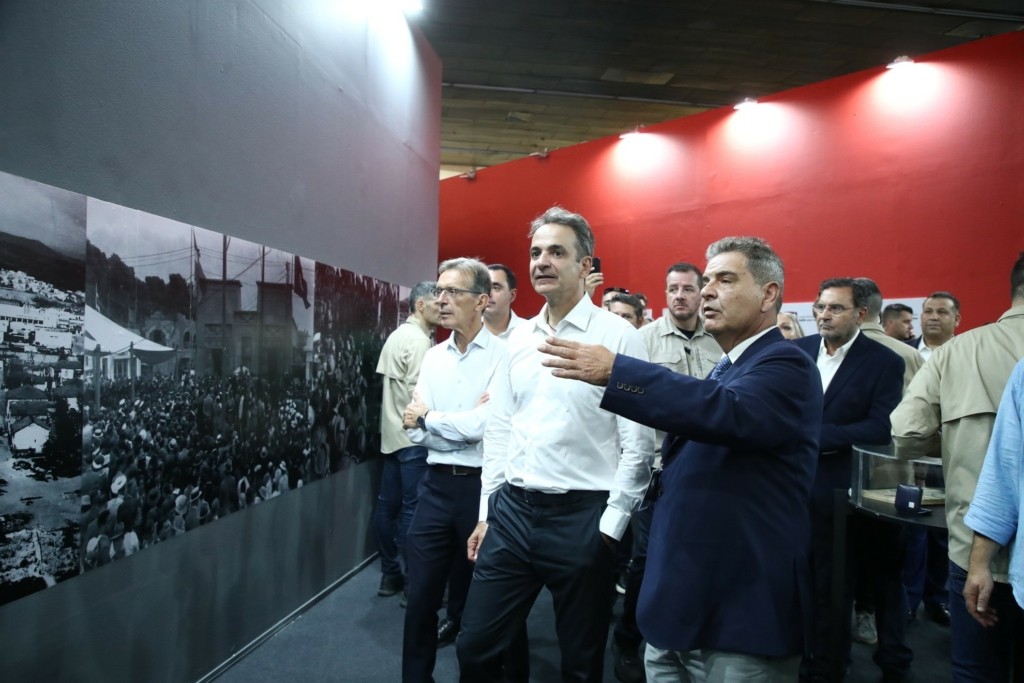 Μετά τη συνάντηση με τη διοίκηση της ΔΕΘ – HELEXPO, ο κ. Μητσοτάκης ξεκίνησε στις 11:10 το πρωί τη βόλτα στους χώρους της ΔΕΘ συνοδευόμενος από τον πρόεδρο της Εκθέσεως, Τάσο Τζήκα, από υπουργούς, από βουλευτές και στελέχη του κόμματος.