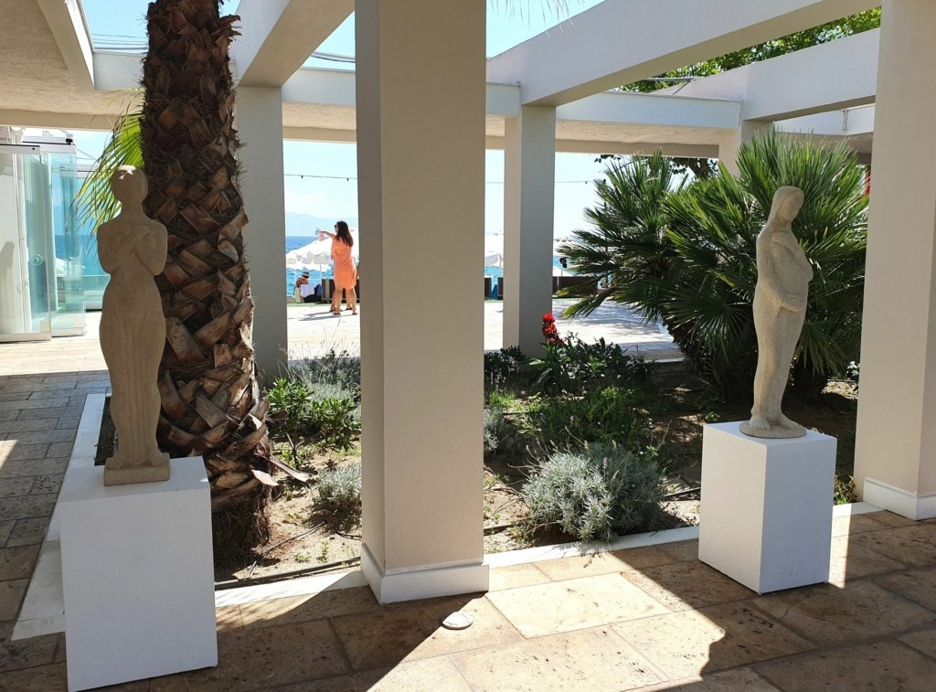 Ο Δημοσθένης Σωτηρούδης, με την εμπειρία και την τεχνική του, κατάφερε να δημιουργήσει μια έκθεση που αναδεικνύει τη γυναικεία μορφή μέσα από την τέχνη, την παράδοση και τον μοντερνισμό, ενώ ταυτόχρονα σέβεται το φυσικό τοπίο και την ατμόσφαιρα του τόπου. Αυτή η μικρή, υπαίθρια έκθεση αποτελεί μια ιδανική εικόνα της γλυπτικής και της φύσης, όπου το έργο τέχνης δεν είναι μόνο να θαυμάζεται, αλλά και να ζει. Οι επισκέπτες – λουόμενοι, είτε είναι ντόπιοι είτε τουρίστες, έχουν την τύχη να απολαύσουν μια αξέχαστη εμπειρία, όπου η τέχνη και η φύση συναντώνται με τον πιο αυθεντικό τρόπο.