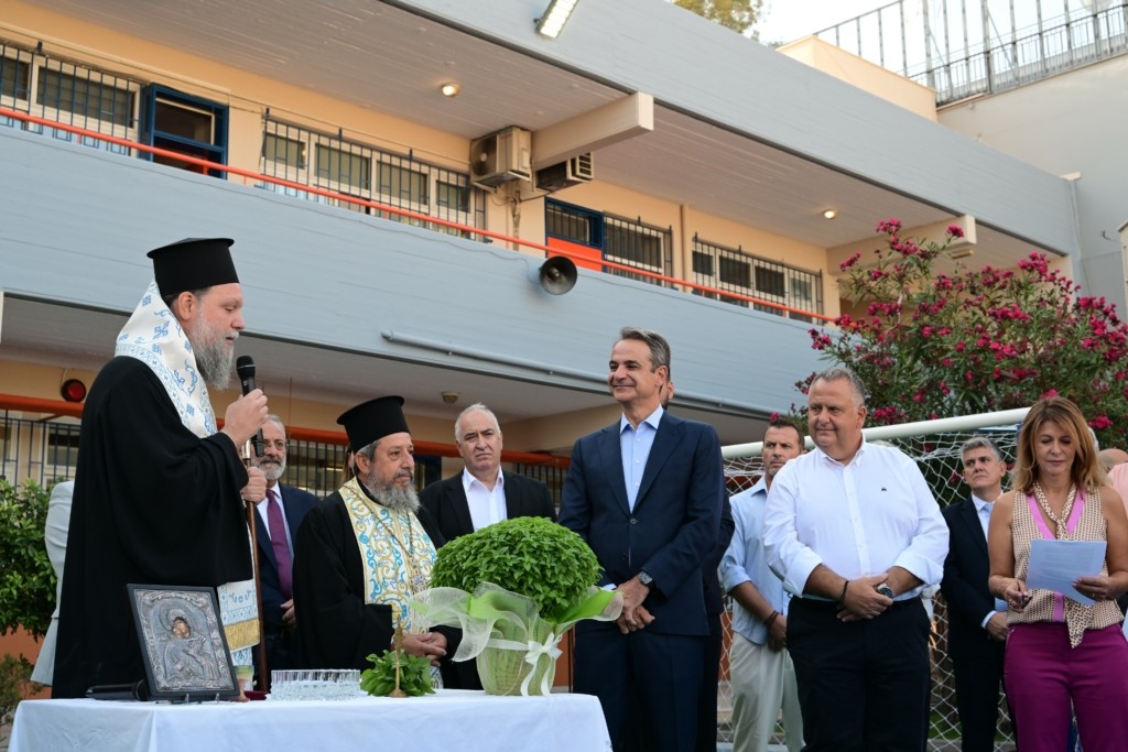 Ο πρωθυπουργός ξεναγήθηκε στους ανακαινισμένους χώρους του σχολείου και στη συνέχεια ξεκίνησε ο αγιασμός.