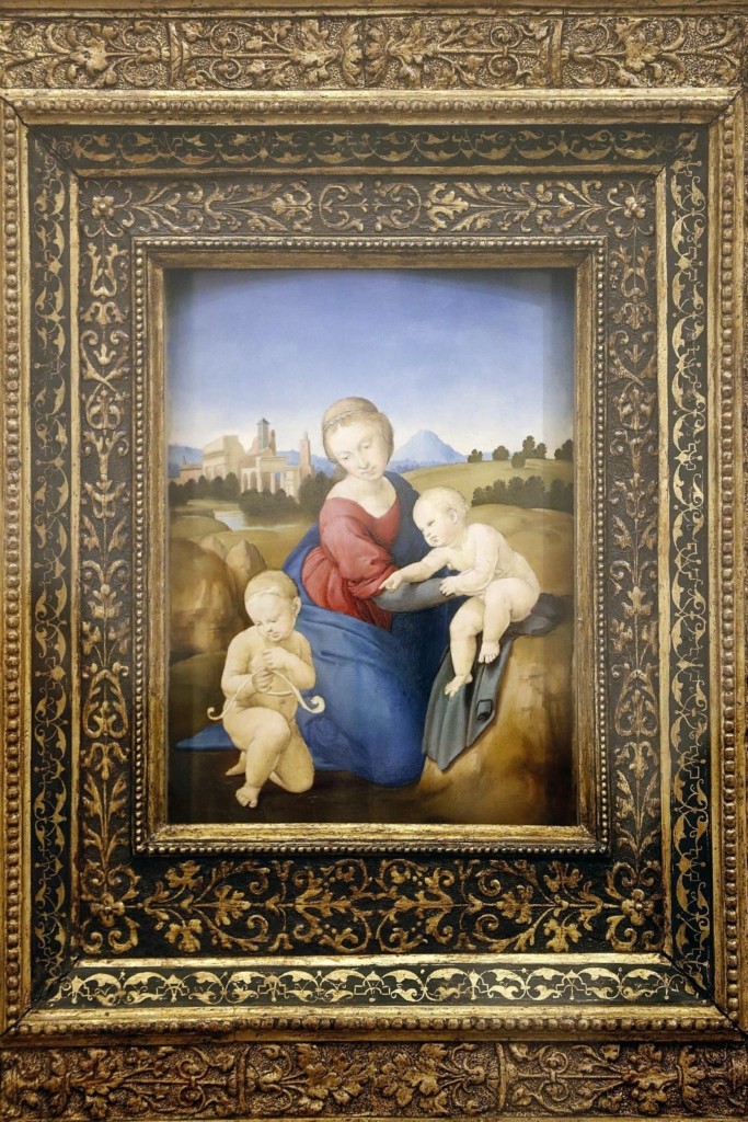 Ένα από τα σημαντικότερα έργα της έκθεσης είναι η Παναγία με το Βρέφος και τον Άγιο Ιωάννη τον Βαπτιστή σε Τοπίο (Η Μαντόνα Άλμπα) από την Εθνική Πινακοθήκη Τέχνης στην Ουάσινγκτον, ένας πίνακας στρογγυλού σχήματος, γνωστός ως tondo. Το έργο θα επανενωθεί με τα προπαρασκευαστικά σκίτσα και σχέδια του Ραφαήλ, τα οποία είναι δάνεια από το Μουσείο Καλών Τεχνών στη Λιλ της Γαλλίας.