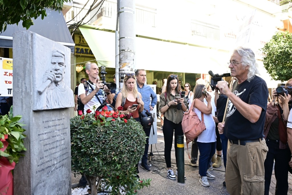 Η μητέρα του άτυχου καλλιτέχνη, Μάγδα Φύσσα ήταν από τους πρώτους ανθρώπους που έφτασαν στο μνημείο. Άφησε λουλούδια εκεί όπου ο γιος της Παύλος στις 18 Σεπτεμβρίου 2013 έπεσε νεκρός από τρεις μαχαιριές. Χάιδεψε την προτομή του γιου της με αναστεναγμό. Δίπλα της, ήταν συγγενείς και φίλοι του Παύλου. Παρόντες ήταν και εκπρόσωποι από πολιτικές παρατάξεις και συλλογικότητες.