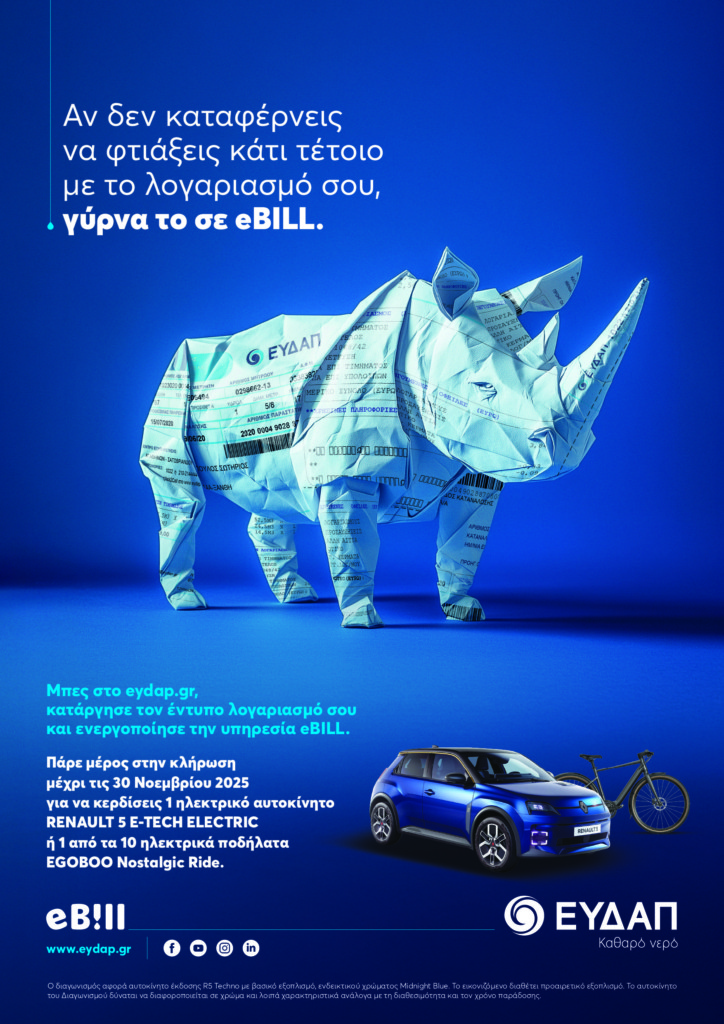 Πιο συγκεκριμένα η ΕΥΔΑΠ προωθεί καμπάνια με το χιουμοριστικό μήνυμα: «Παίρνεις τον λογαριασμό της ΕΥΔΑΠ και τον τσακίζεις στα τέσσερα. Κάνεις ένα διαγώνιο δίπλωμα και κλείνεις το χαρτί στη μέση σε σχήμα τριγώνου. Συνεχίζεις με εξίσου περίπλοκα βήματα και στο τέλος έχεις στα χέρια σου έναν χάρτινο δεινόσαυρο. Αν δεν καταφέρνεις να φτιάξεις κάτι τέτοιο με τον λογαριασμό της ΕΥΔΑΠ, γύρνα το σε eBILL!».