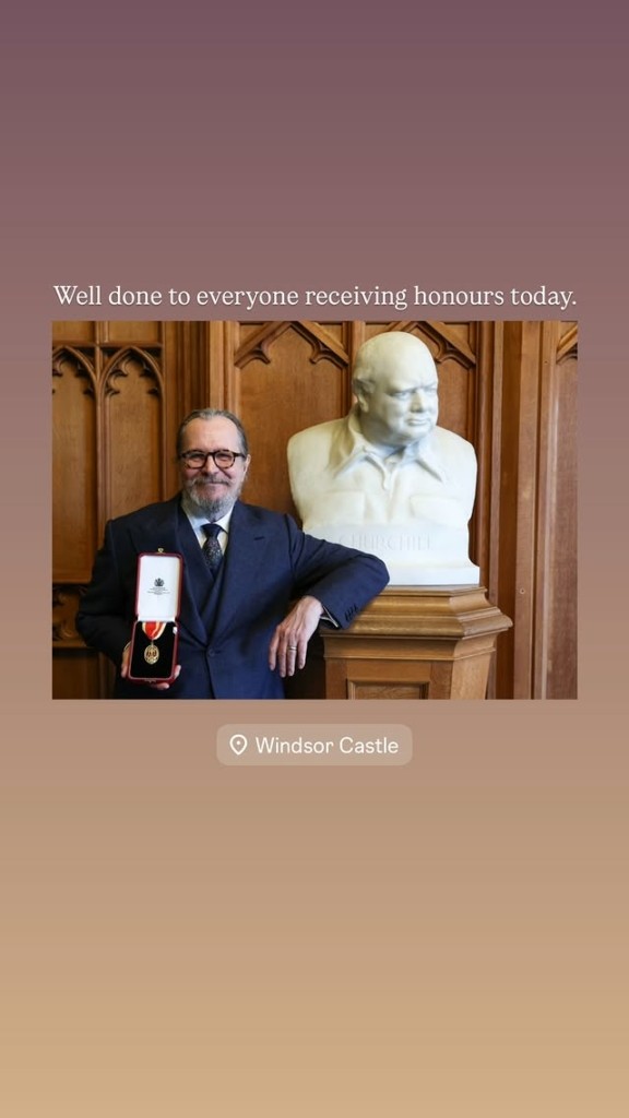 Ο βραβευμένος με Όσκαρ και BAFTA ηθοποιός, Γκάρι Όλντμαν (Gary Oldman), έλαβε τον τίτλο του Ιππότη για τη μακρόχρονη προσφορά του στον κινηματογράφο και το θέατρο.