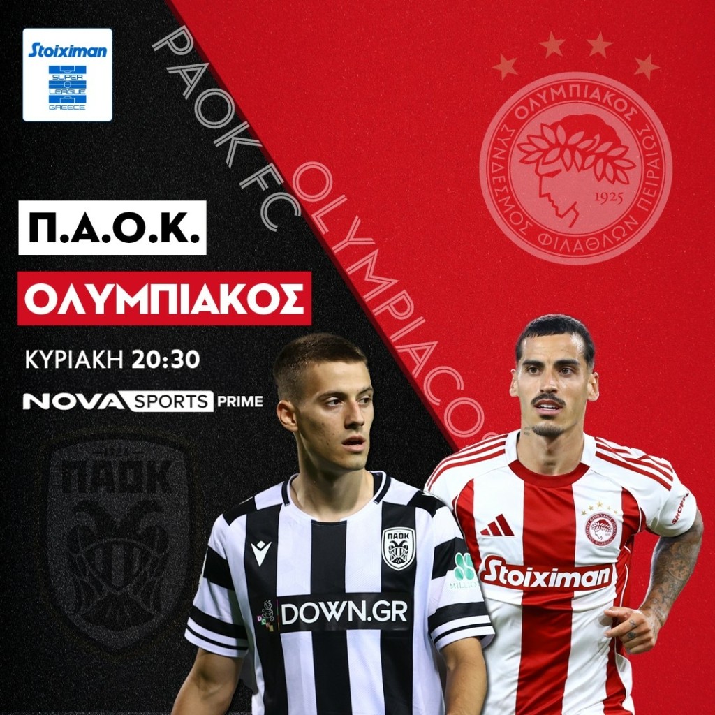 20:30 Stoiximan Super League: ΠΑΟΚ-Ολυμπιακός Novasports Prime σε περιγραφή του Γρηγόρη Παπαβασιλείου και ρεπορτάζ του Κωστή Μπότσαρη και του Βασίλη Κωνσταντόπουλου