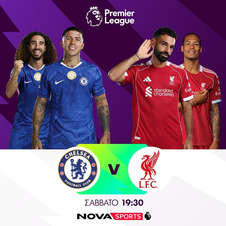 19:30 Premier League: Τσέλσι-Λίβερπουλ Novasports Premier League σε περιγραφή του Χρήστου Σωτηρακόπουλου