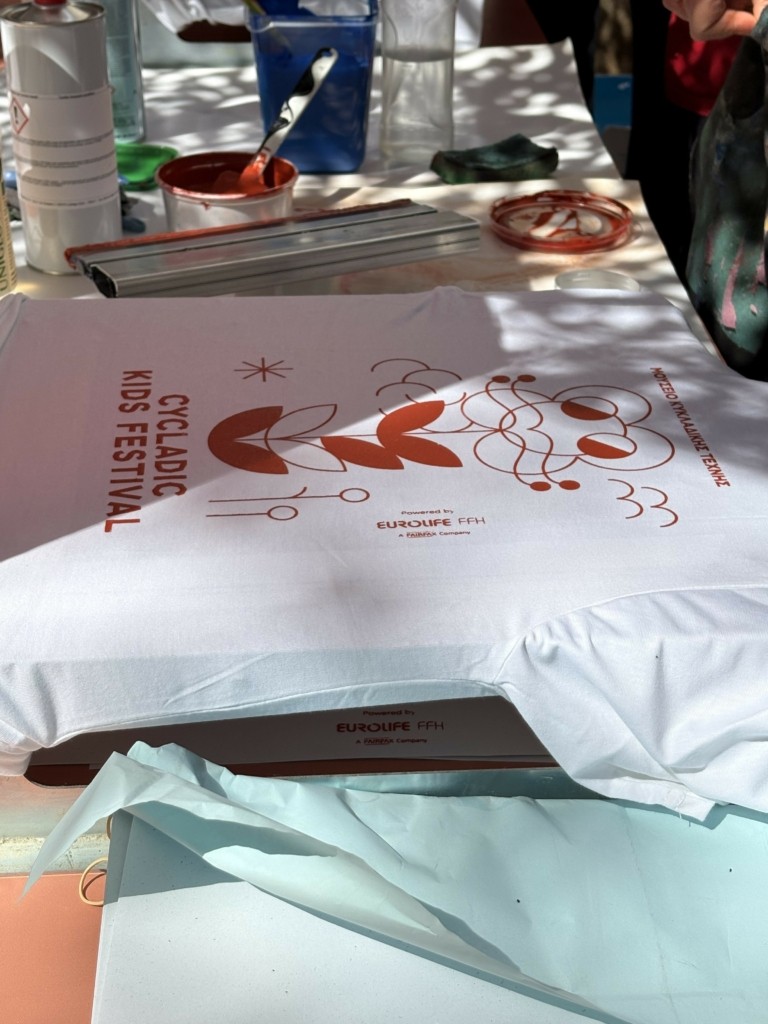 Η Eurolife FFH, ως ο Μεγάλος Χορηγός του φεστιβάλ, ήταν και πάλι εκεί, στηρίζοντας έμπρακτα την πρωτοβουλία του Μουσείου Κυκλαδικής Τέχνης να δημιουργήσει μια εμπνευσμένη και προσβάσιμη εμπειρία για παιδιά και οικογένειες. Παράλληλα, η εταιρεία συμμετείχε με δική της δράση, προσφέροντας μια ξεχωριστή εμπειρία στους επισκέπτες του φεστιβάλ. Το εργαστήριο «Αξία έχει… να προστατεύουμε όσα αγαπάμε!», που πραγματοποιήθηκε σε συνεργασία με την ομάδα Λούπες, προσκάλεσε όλα τα παιδιά να ανακαλύψουν την τέχνη της μεταξοτυπίας, μία από τις αρχαιότερες τεχνικές τυπώματος. Όλοι οι συμμετέχοντες είχαν την ευκαιρία να τυπώσουν μοναδικά σχέδια πάνω στα παλιά τους μπλουζάκια, αλλά και παλιές αφίσες του Μουσείου, συνδέοντας έτσι τη δημιουργικότητα με την έννοια της επαναχρησιμοποίησης και της φροντίδας για το περιβάλλον.
