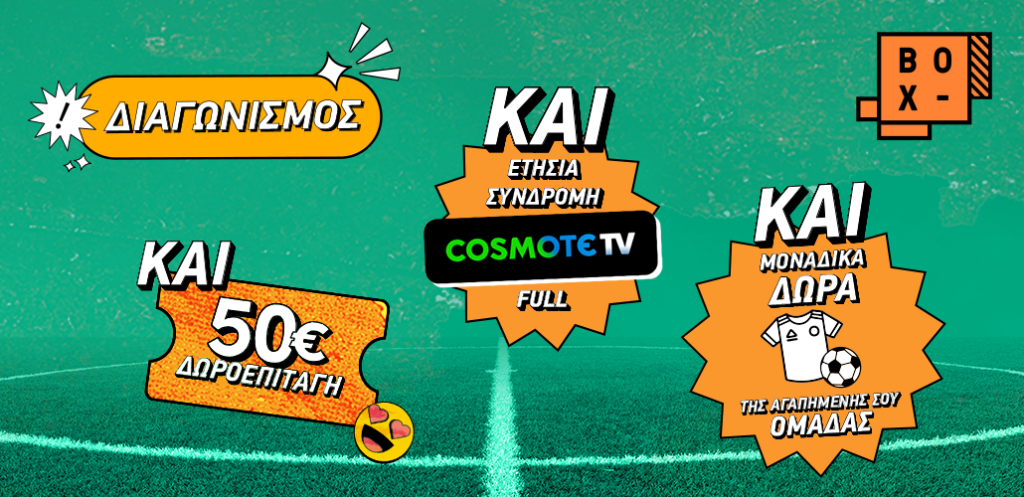 Παράλληλα, το BOX δίνει την ευκαιρία στους χρήστες του σε κάθε παραγγελία τους να διεκδικήσουν μοναδικά δώρα που συνδυάζουν ποδόσφαιρο και ψυχαγωγία. Μέσα από σχετικό διαγωνισμό που ολοκληρώνεται στις 19 Οκτωβρίου, 10 νικητές θα κερδίσουν από:
