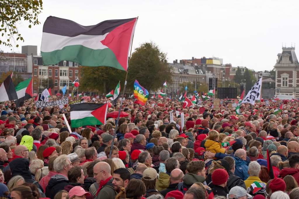 Σύμφωνα με τους διοργανωτές της διαδήλωσης «Κόκκινη Γραμμή», περίπου 250.000 άνθρωποι συμμετείχαν στην κινητοποίηση αυτήν, καλώντας παράλληλα την ολλανδική κυβέρνηση να λάβει μέτρα εναντίον του Ισραήλ.