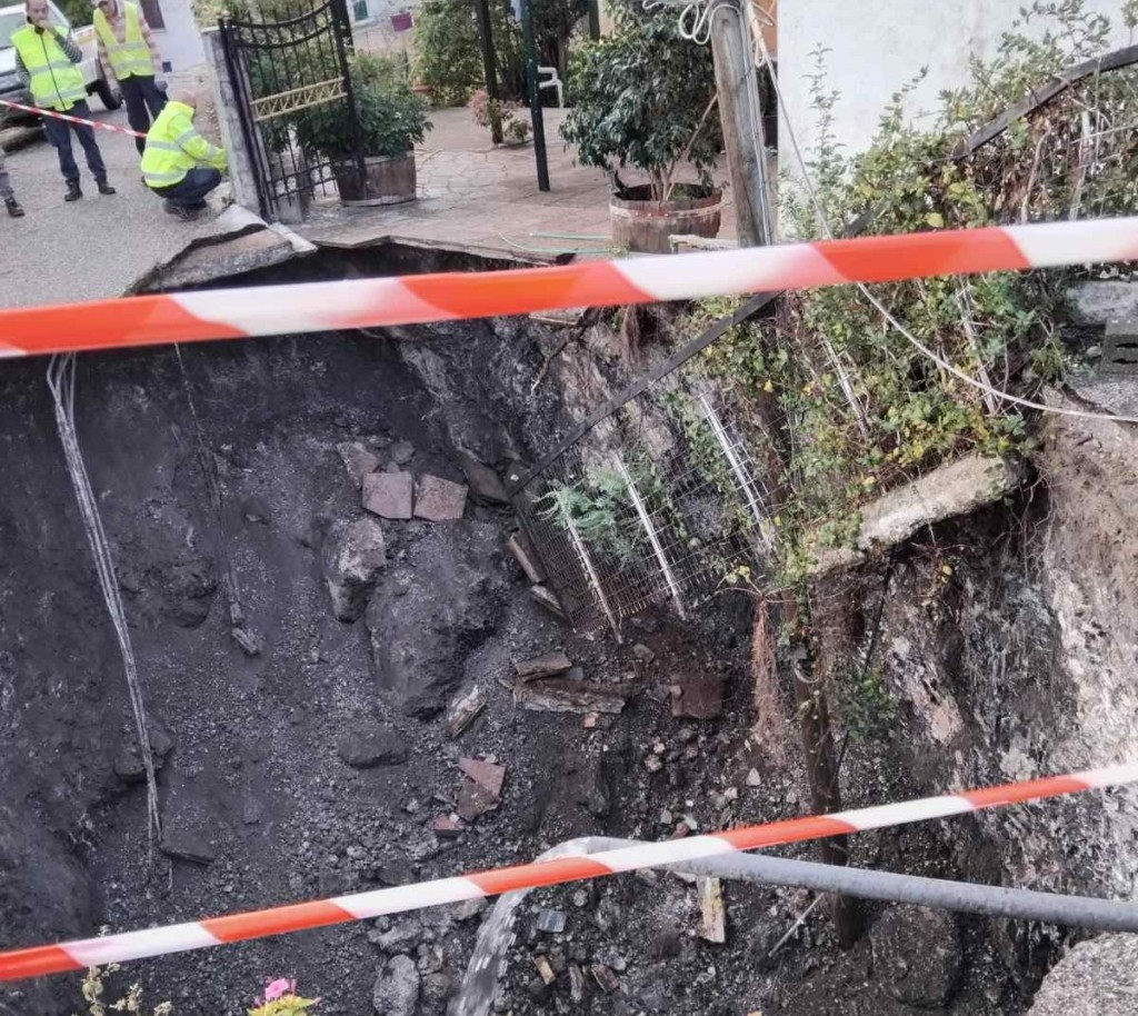 Με το πρώτο φως της ημέρας φάνηκε το μέγεθος μιας νέας επικίνδυνης καθίζησης του εδάφους, με την δημιουργία κρατήρα εντός της κοινότητας, δίπλα σε κατοικίες.