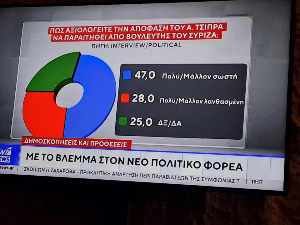 Απαντώντας σε ερώτηση σχετικά με την κίνηση του Αλέξη Τσίπρα να παραιτηθεί της βουλευτικής του θέσης από τον ΣΥΡΙΖΑ, σχεδόν ο ένας στους δύο (47%) λέει πως έπραξε σωστά, ενώ το 28% την χαρακτηρίζει λάθος και ένα 25% δεν έχει ξεκάθαρη γνώμη.