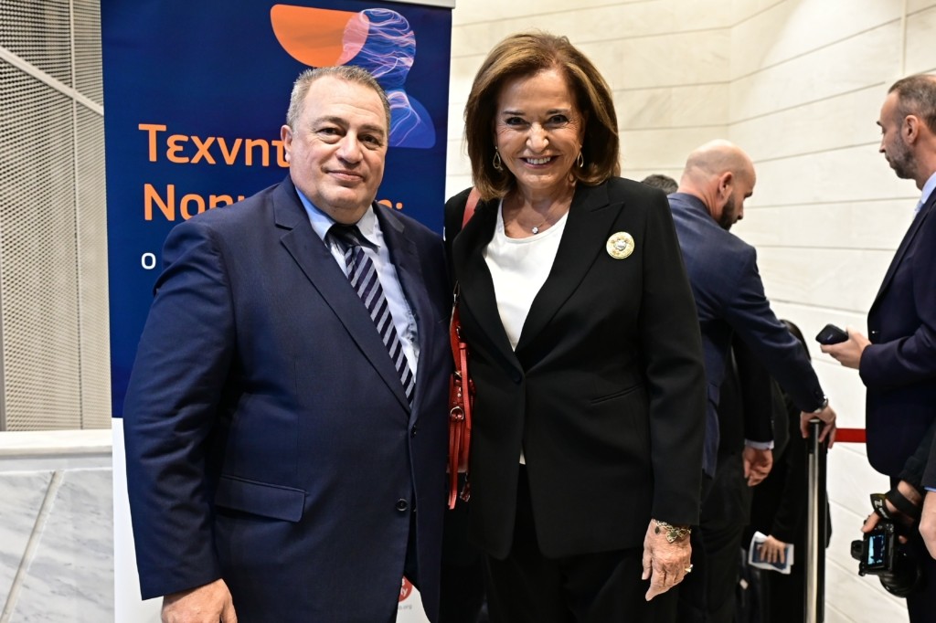 Θερμή ήταν και η χειραψία που αντάλλαξε ο Κ. Καραμανλής με τον Ε. Στυλιανίδη – ο οποίος διετέλεσε υπουργός στις κυβερνήσεις του – ενώ ο Κ. Μητσοτάκης σε σύντομο χαιρετισμό αναφέρθηκε στη σημασία και την επίδραση της Τεχνητής Νοημοσύνης στο σύγχρονο κόσμο, τους κινδύνους της («δεν θα θέλαμε ένα παιδί να θεωρεί μια μηχανή φίλο του», είπε χαρακτηριστικά) αλλά και στη χρήση της τεχνολογίας ενόψει της συνταγματικής αναθεώρησης.