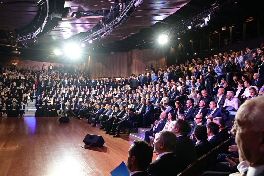 O πρωθυπουργός Κυριάκος Μητσοτάκης έγινε δεκτός με χειροκροτήματα στην αίθουσα του Ωδείου Αθηνών, ενώ λίγο νωρίτερα, θερμή υποδοχή είχαν επιφυλάξει οι παριστάμενοι και στον πρώην πρωθυπουργό Κώστα Καραμανλή.