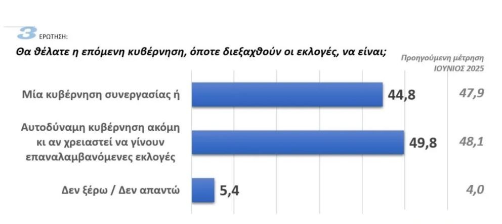 Ωστόσο η πλειοψηφία είναι υπέρ της εκλογής αυτοδύναμης κυβέρνησης σε ποσοστό 49,8%.