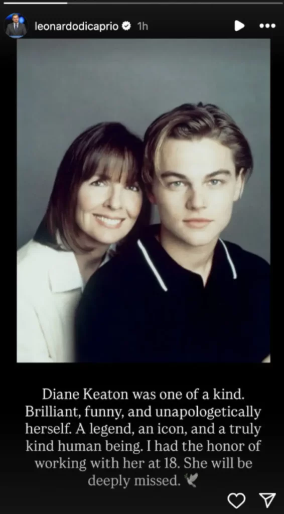 «Η Νταϊάν Κίτον ήταν μοναδική. Λαμπρή, αστεία και αφοπλιστικά ο εαυτός της. Ένας θρύλος, ένα είδωλο και ένας πραγματικά ευγενικός άνθρωπος. Είχα την τιμή να συνεργαστώ μαζί της στα 18 μου. Θα μας λείψει βαθιά» έγραψε στη λεζάντα της δημοσίευσής του.