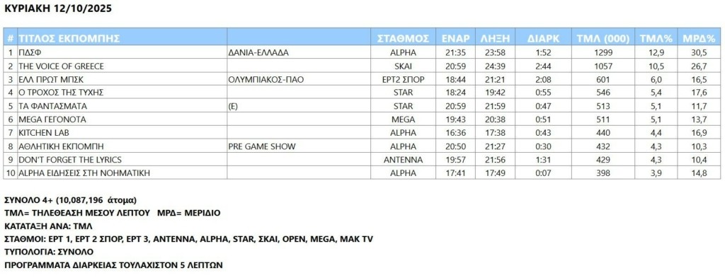 Μάλιστα, η μετάδοση του ματς, παρά τον υπολογίσιμο «αντίπαλο » και τον ανταγωνισμό άλλων αθλητικών μεταδόσεων της ημέρας, δεν επηρεάστηκε και είχε την υψηλότερη επίδοση.
