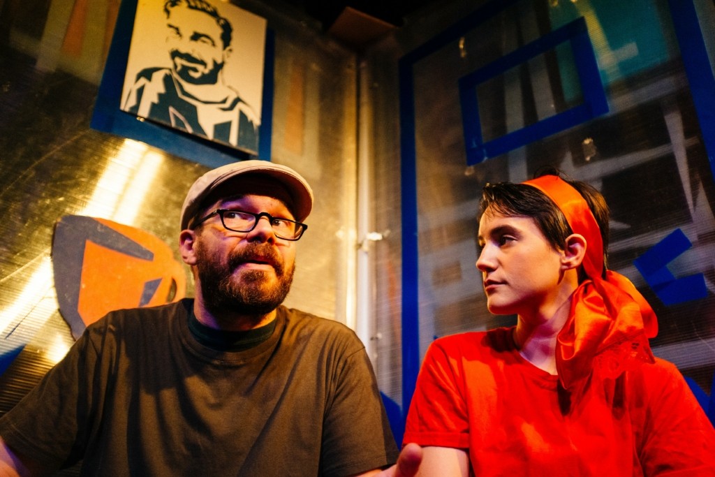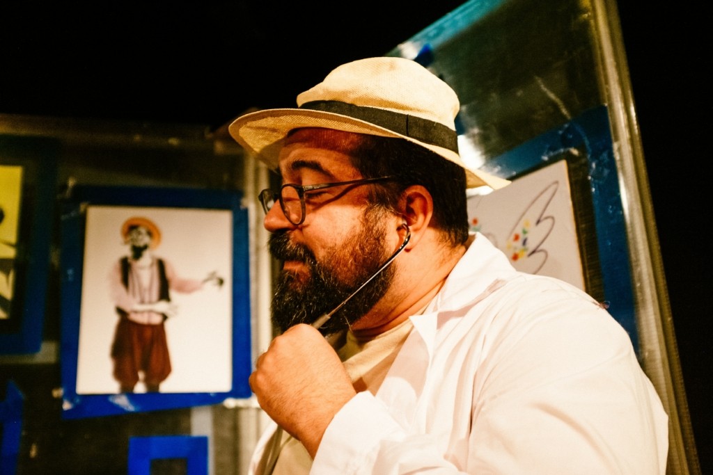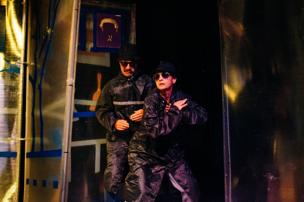 Το σκηνικό της παράστασης-μια πρωτότυπη περιστρεφόμενη εγκατάσταση που αλλάζει διαρκώς, ανάλογα με την εξέλιξη της ιστορίας, περιλαμβάνει πολλά εικαστικά στοιχεία, κάποια από τα οποία δημιουργούνται επιτόπου, μπροστά στο κοινό.