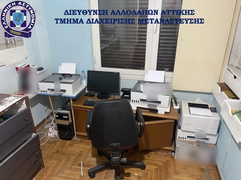 Για την υπόθεση συνελήφθησαν χθες, Τετάρτη 15 Οκτωβρίου 2025, σε Αθήνα και Περιστέρι, πέντε μέλη της οργάνωσης κατηγορούμενοι -κατά περίπτωση- για εγκληματική οργάνωση, πλαστογραφία, καθώς και παραβάσεις των νομοθεσιών περί αλλοδαπών, περί όπλων και κατοχή διαβατηρίων και ταξιδιωτικών εγγράφων τρίτων προσώπων, ενώ αναζητούνται ακόμη -2- μέλη της.