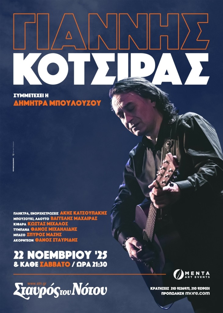 Στην Κεντρική σκηνή του Σταυρού του Νότου επιστρέφει, για άλλη μία χρονιά, ο Γιάννης Κότσιρας ο οποίος μαζί με τους υπέροχους μουσικούς που τον πλαισιώνουν, υπόσχονται μοναδικές μουσικές βραδιές κάθε Σάββατο, από τις 22 Νοεμβρίου.