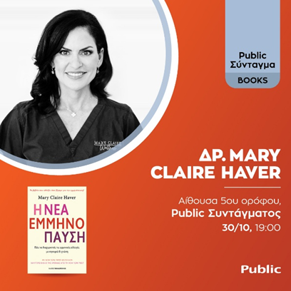 Τα Public και οι εκδόσεις Παπαδόπουλος σε προσκαλούν στην παρουσίαση του βιβλίου της Δρ. Mary Claire Haver, «Η νέα εμμηνόπαυση», την Πέμπτη 30/10 στις 19:00, στην αίθουσα εκδηλώσεων του Public Συντάγματος.