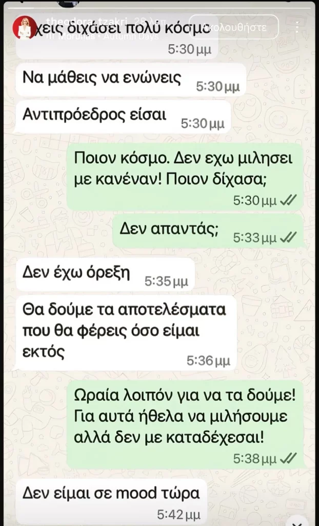 Εξηγήσεις για την ανάρτηση της ιδιαίτερης συνομιλίας της στο what’s up της με τον πρόεδρο του Κινήματος Δημοκρατίας, Στέφανο Κασσελάκη, έδωσε η Θεοδώρα Τζάκρη.