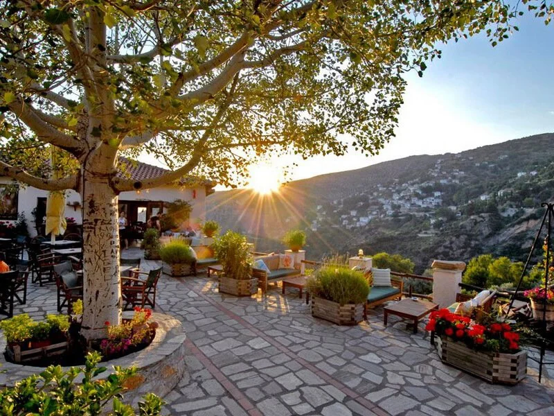 Στα δρομάκια του χωριού, όπου κυριαρχούν τα σπίτια από ντόπιο μαύρο μάρμαρο (πολλά από τα οποία αγοράστηκαν και αναστυλώθηκαν τη δεκαετία του ’90 από επώνυμους Αθηναίους), και γύρω από την πλατεία θα βρείτε καλές ταβέρνες, cafes-μπαράκια και μαγαζιά με ξυλόγλυπτα και τοπικά προϊόντα (κυρίως τυροκομικά και ζυμαρικά).