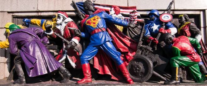Στη Σόφια ένα αντίστοιχο μνημείο άγνωστοι το έβαψαν και το μετέτρεψαν σε… σούπερ ήρωες. Η ζημιά αποκαταστάθηκε και το μνημείο παραμένει εκεί.