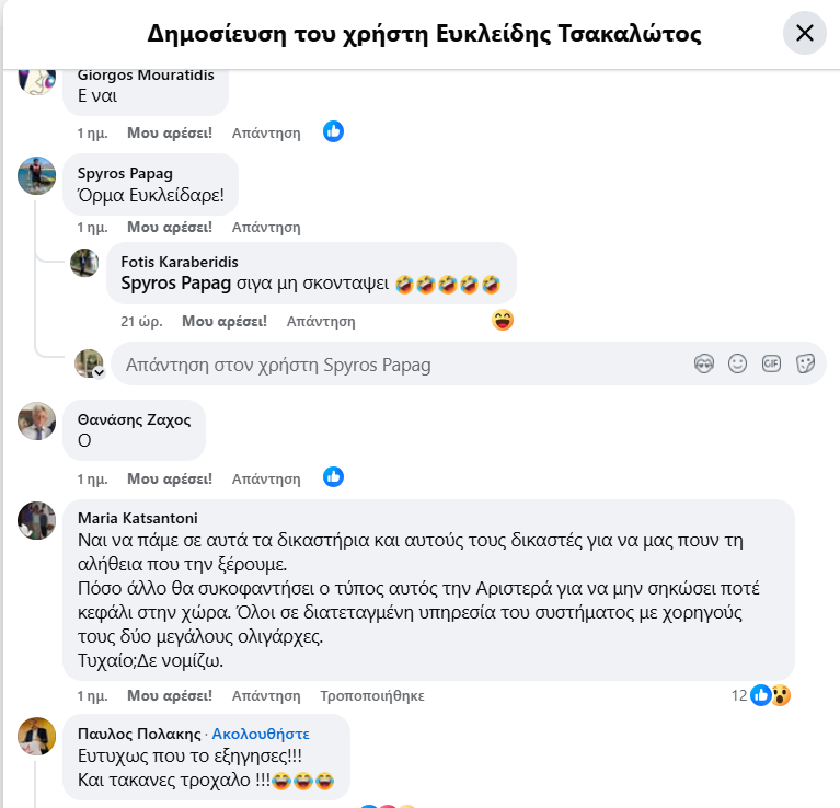 Μεταξύ των άλλων ήρθαν στην επιφάνεια ξανά κάποιες “αγάπες”, όπως αυτή του Παύλου Πολάκη με τον Ευκλείδη Τσακαλώτο. Ο βουλευτής Χανίων λοιπόν έσπευσε να σχολιάσει, με σκωπτική διάθεση, την απάντηση που έδωσε ο Τσακαλώτος στο δημοσίευμα του Ποντικιού. «Ευτυχώς που τα εξήγησες, τα έκανες τράχαλο» έγραψε κάτω από την ανάρτηση του άλλοτε υπουργού Οικονομικών. Τράχαλο είναι το χοντρό χαλίκι, για την ιστορία.
