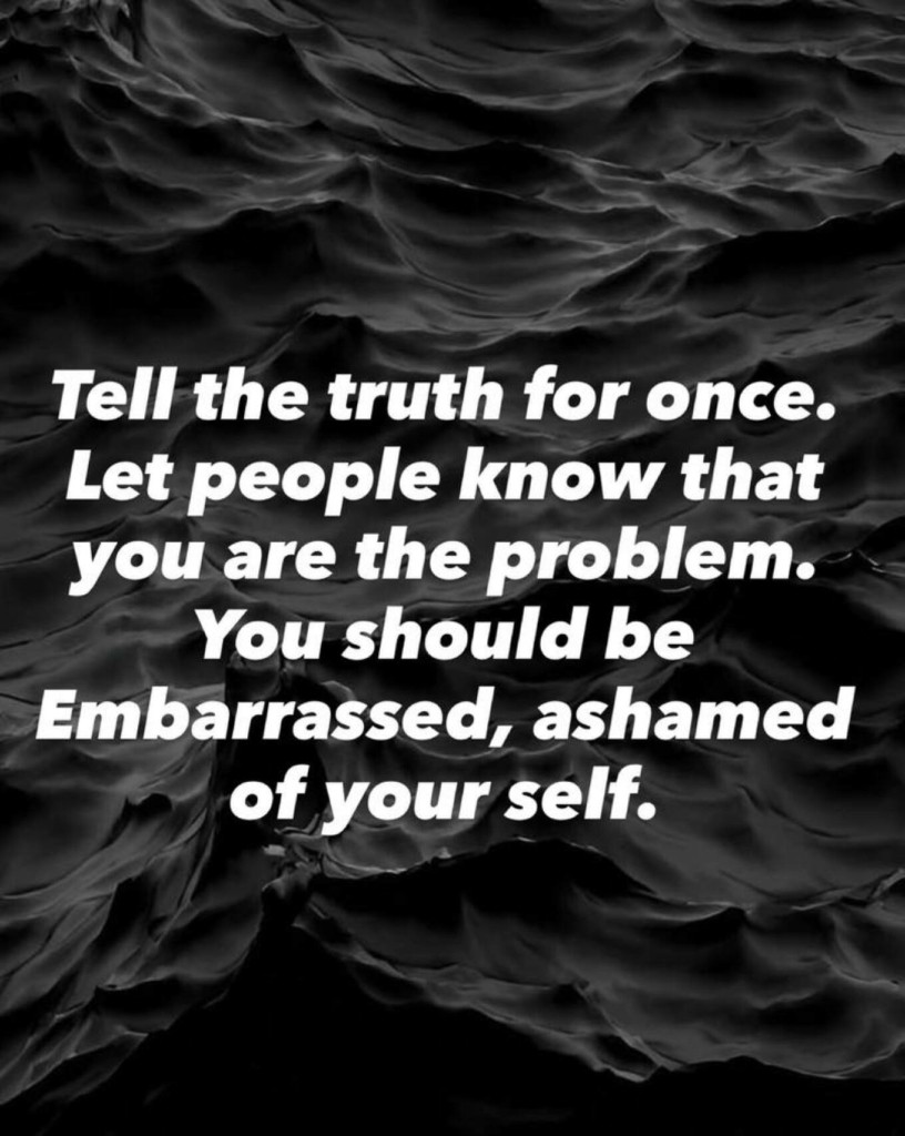 «Πες την αλήθεια επιτέλους. Άσε τον κόσμο να μάθει ότι εσύ είσαι το πρόβλημα. Θα πρέπει να ντρέπεσαι για τον εαυτό σου» είπε, κλείνοντας.