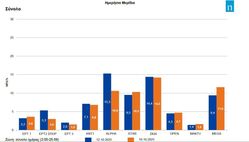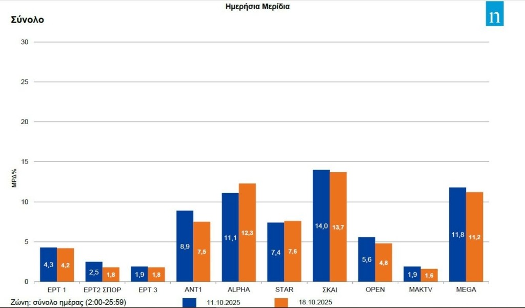 Πέντε στις πέντε κατάφερε ο Alpha με την πρωτιά τηλεθέασης την Παρασκευή (17/10)