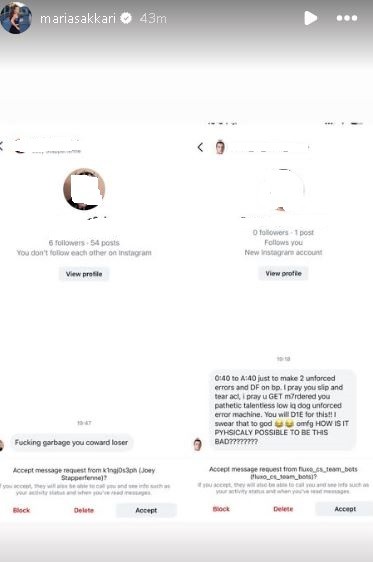 Η Σάκκαρη ανάρτησε ορισμένα από τα σχόλια για να δείξει το τι περνούν οι τενίστες στη διάρκεια της σεζόν και απάντησε ότι την επόμενη σεζόν, στοχεύει να επιστρέψει ψηλά παρά τις προσβλητικές κριτικές.
