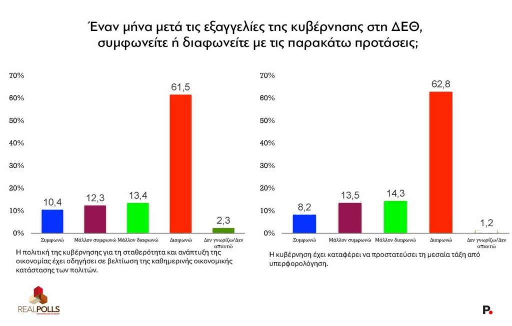 Στο ερώτημα αν, έναν μήνα μετά τις εξαγγελίες της κυβέρνησης στη ΔΕΘ, συμφωνούν ή διαφωνούν με τις παρακάτω προτάσεις:
