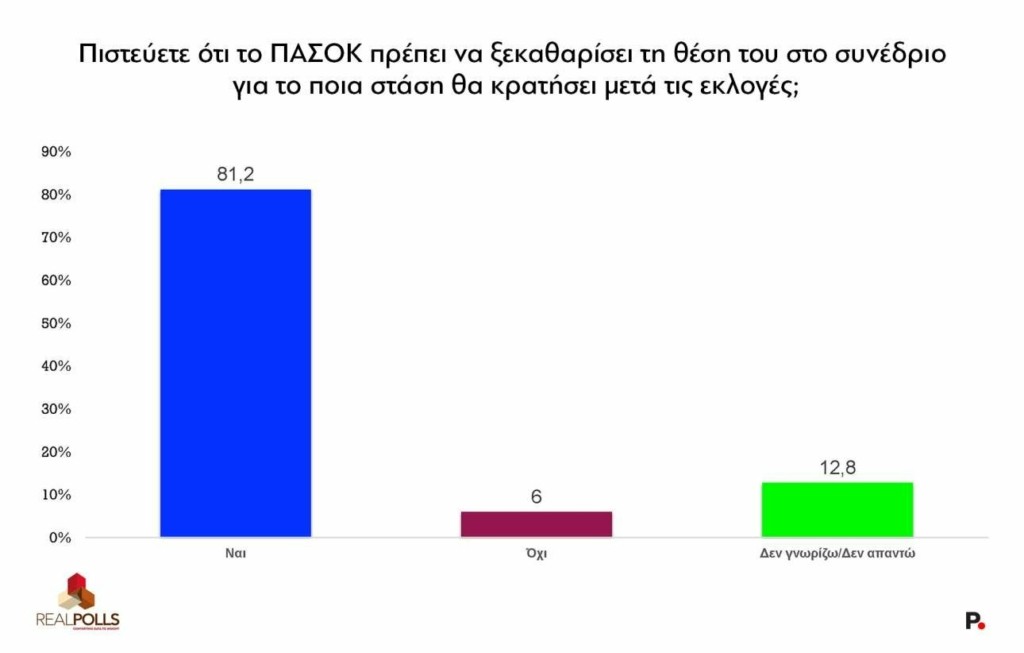 Να ξεκαθαρίσει τη θέση του στο συνέδριο για τη στάση που θα τηρήσει μετά τις εκλογές ζητά απο το ΠΑΣΟΚ το συντριπτικό ποσοστό 81,2% των ερωτηθέντων.