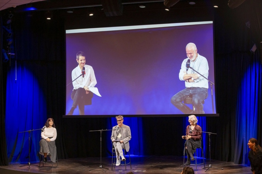Το πάνελ της συνέντευξης Τύπου του 66ου Φεστιβάλ Κινηματογράφου Θεσσαλονίκης, με τη Γενική διευθύντρια Ελίζ Ζαλαντό στη Θεσσαλονίκη και τον Καλλιτεχνικό διευθυντή Ορέστη Ανδρεαδάκη στην Αθήνα
