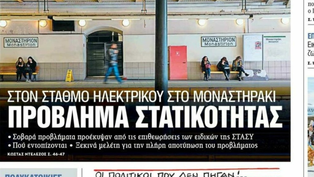 Σημαντικές φθορές στον μεταλλικό σκελετό της οροφής στον σταθμό του Ηλεκτρικού «Μοναστηράκι», έφεραν στην επιφάνεια οι πρόσφατες επιθεωρήσεις ειδικών. Από τον έλεγχο που έγινε διαπιστώθηκε σοβαρό πρόβλημα στατικότητας που προκαλεί μεγάλο κίνδυνο για εργαζόμενους και επιβάτες.