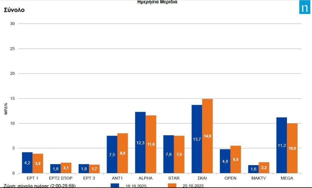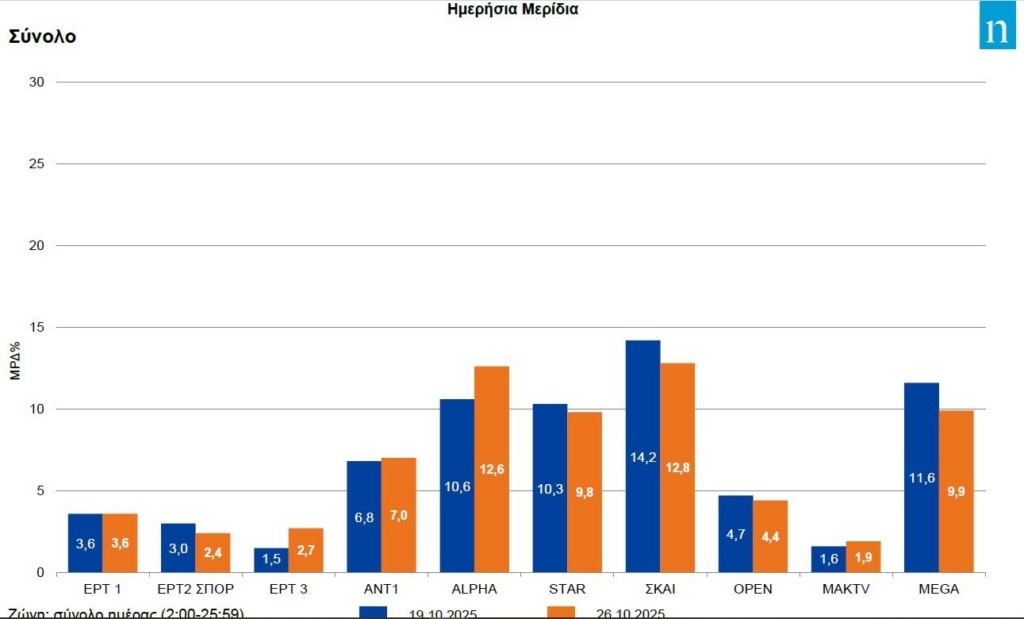 Στα αξιοσημείωτα του διήμερου οι επιδόσεις ΕΡΤ2 ΣΠΟΡ και ΕΡΤ3 που διαμορφώθηκαν πάνω από εκείνες του MAK TV, αλλά και οι «χαμηλές πτήσεις» της ΕΡΤ1.