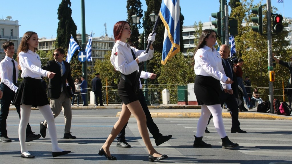 Τη συμπαράσταση τους στον λαό της Παλαιστίνης εξέφρασαν δύο μαθήτριες τοποθετώντας ένα καρπούζι στο πουκάμισο τους. Η κοπέλες συμμετείχαν στην μαθητική παρέλαση στην Πλατεία Συντάγματος.