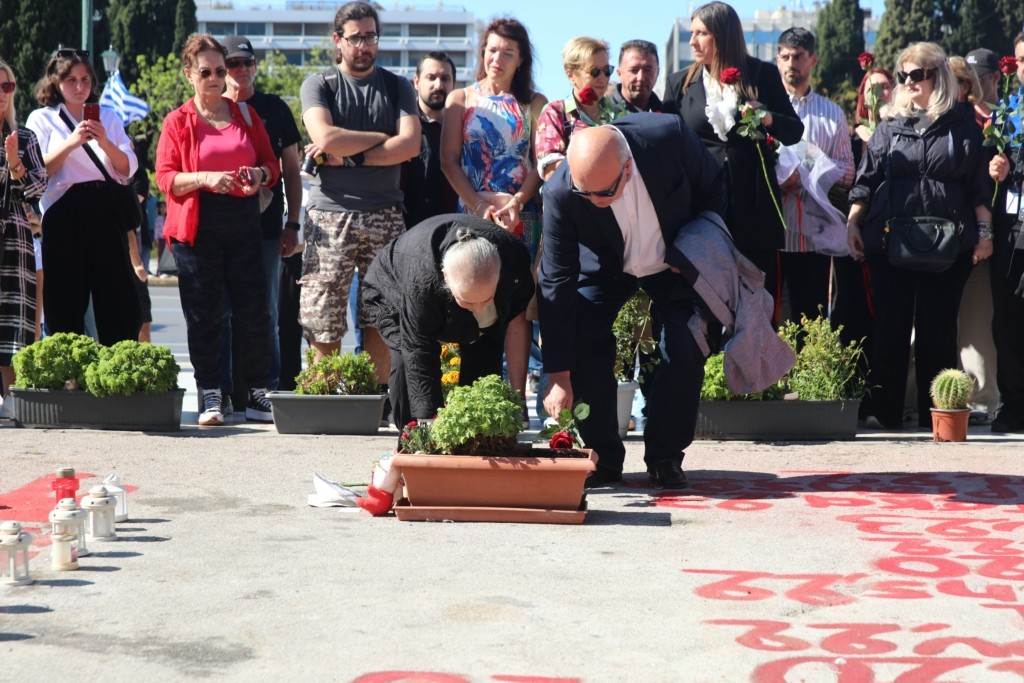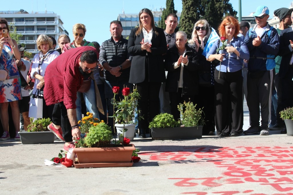 Στο άτυπο μνημείο για τα θύματα της τραγωδίας των Τεμπών, μπροστά από τον Άγνωστο Στρατιώτη, στράφηκε το ενδιαφέρον μετά την ολοκλήρωση της μαθητικής παρέλασης στην Αθήνα.