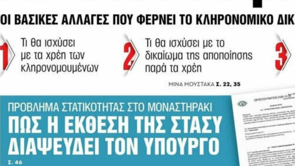 Σήμερα η εφημερίδα επανέρχεται και με πρωτοσέλιδο δημοσιευμα στο οποίο αναφέρει ότι «η έκθεση της ΣΤΑΣΥ διαψεύδει τον υπουργό».