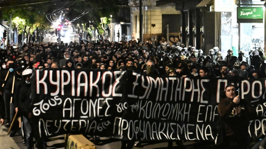 Συλλογικότητες από τον ιδεολογικό χώρο της αναρχίας πραγματοποίησαν πορεία στη μνήμη του Κυριάκου Ξυμητήρη, που σκοτώθηκε στην έκρηξη που σημειώθηκε σε διαμέρισμα στους Αμπελόκηπους τον περασμένο Νοέμβριο.