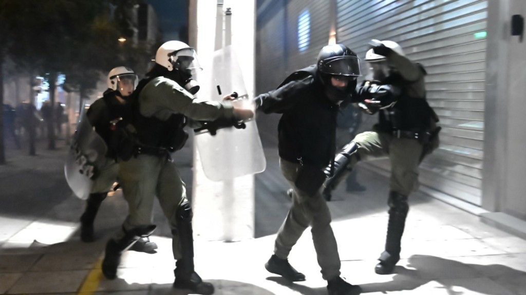 Στην Ομόνοια ξέσπασαν επεισόδια, με τους αστυνομικούς να χτυπούν διαδηλωτές.