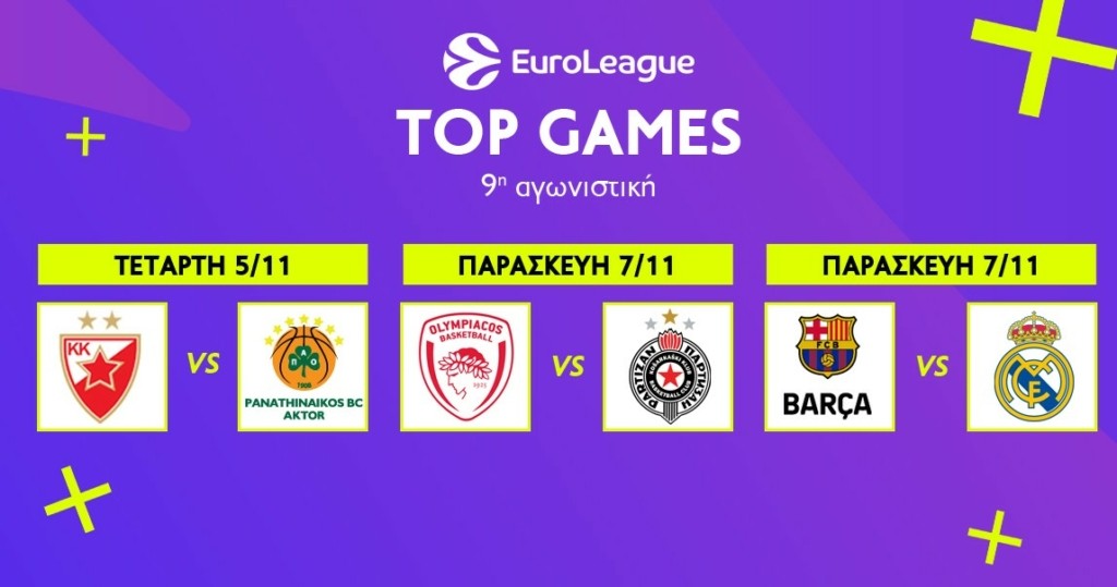 Η EuroLeague, η κορυφαία ευρωπαϊκή διασυλλογική διοργάνωση στο χώρο του μπάσκετ και μεγαλύτερη όλων των εποχών, ετοιμάζεται για τη συναρπαστική 9η αγωνιστική με ελληνοσερβικές μονομαχίες και ElClasico στο παρκέ του Novasports!