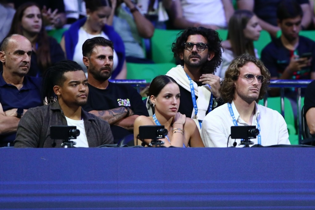 Ο Στέφανος Τσιτσιπάς, ο οποίος δεν κατάφερε να αγωνιστεί στο τουρνουά λόγω του προβλήματος που τον ταλαιπωρεί στην μέση και ο Εμανουήλ Καραλής παρακολουθούν δίπλα δίπλα τον αγώνα του Νόλε.